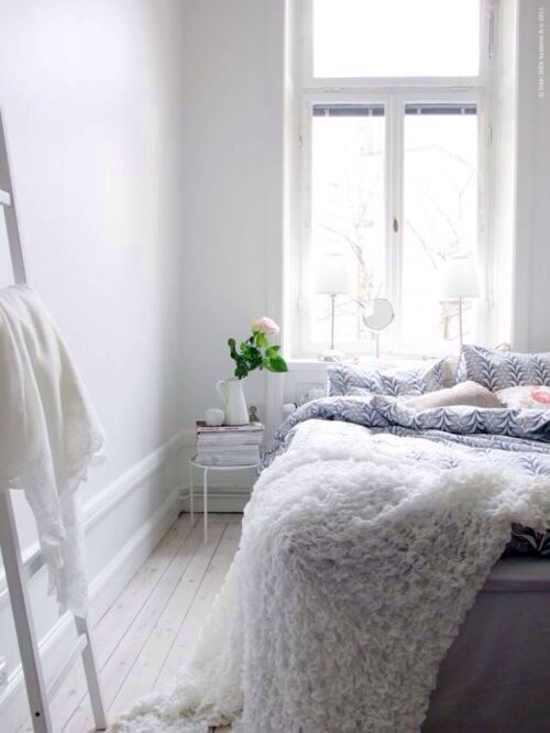 Juego de grises y blancos en las paredes de esta vivienda plasmados en diferentes planos de pared. Una cuidada selección de piezas auxiliares como lámparas, asientos, o algún adorno. Alguna pieza reciclada como la mesa de palets o el cabecero...